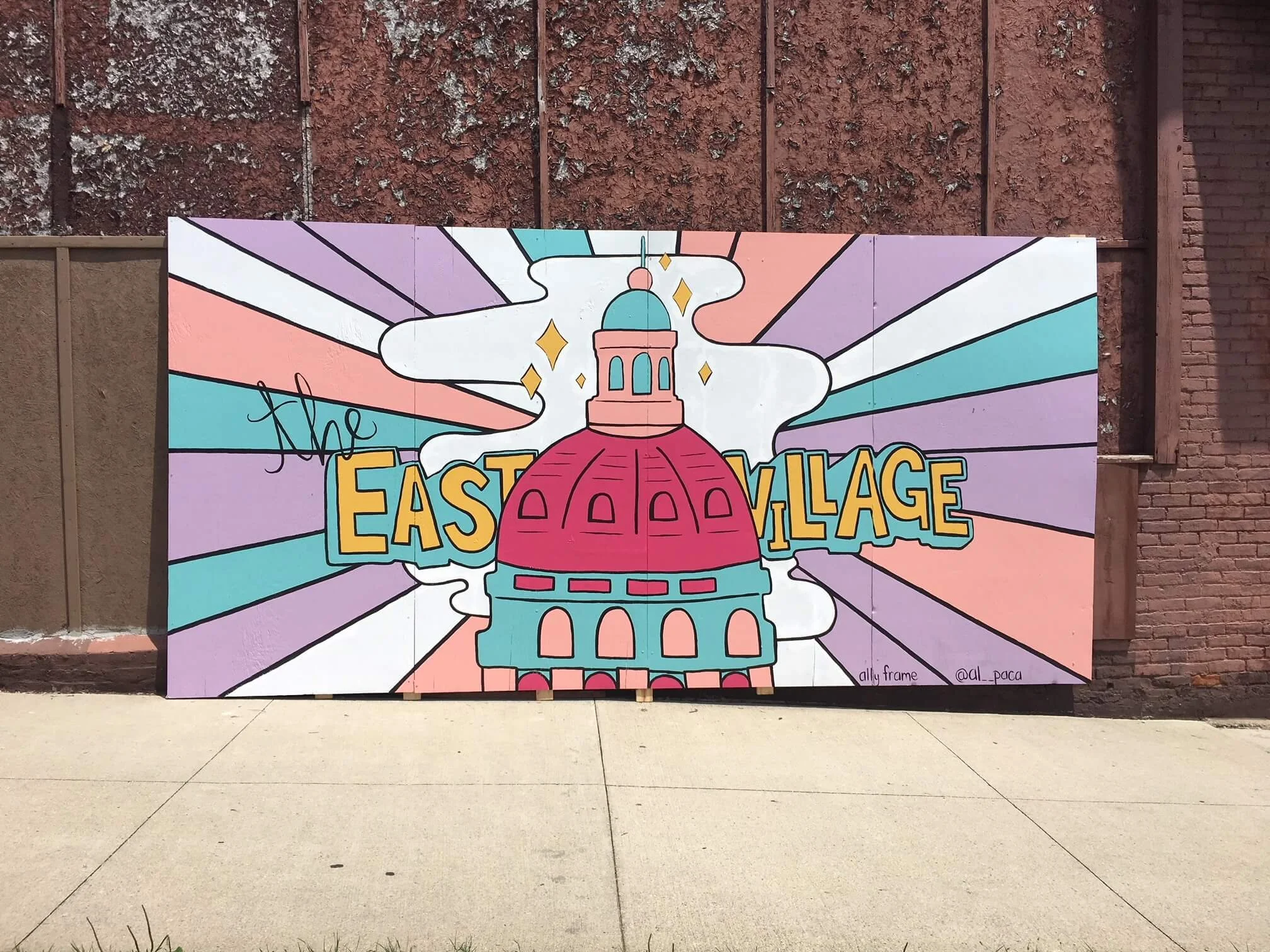A photo shoot destination, this 16’ x 8’ mural highlights Des Moines as Iowa’s capitol city. AARP commissioned it as part of a “Better Block” initiative to reinvigorate the East Village neighborhood.